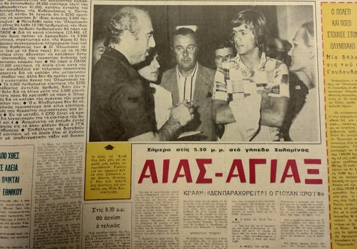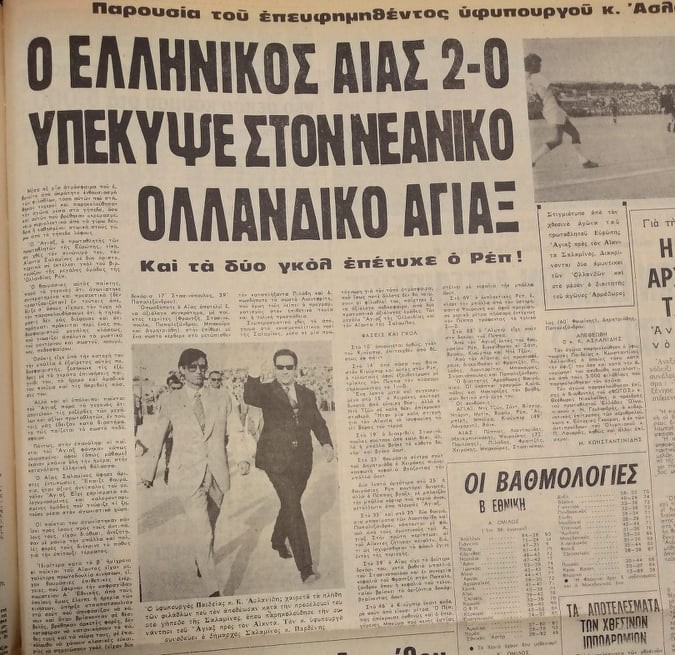 Θα το φανταζόταν κανείς; Ο τρεις φορές πρωταθλητής Ευρώπης, Άγιαξ, θα ερχόταν στη χώρα μας για να αγωνιστεί σε ένα φιλικό παιχνίδι. Και το πιο «τρελό» θα αγωνιζόταν στο Δημοτικό Στάδιο Σαλαμίνας, με αντίπαλο έναν άλλο Αίαντα.